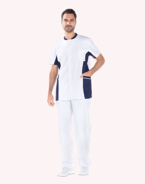 La tunique médicale homme manches courtes TIMEO allie sobriété et allure professionnelle pour vos journées au quotidien dans le secteur médical. Sa coupe droite et sa longueur de 78 cm offrent une silhouette harmonieuse et adaptée à tous les gestes du métier. Les fentes sur les côtés apportent une ligne élégante, et la fermeture par pressions sous patte permet un enfilage simple et rapide.