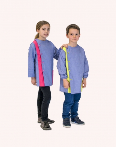 Grâce à ses manches longues et ses poignets élastiques, la blouse de peinture pour enfant KIM protège vos petits des éclaboussures lors de leurs activités créatives. Sa fermeture latérale par pressions facilite l'habillage pour plus d'autonomie. Avec sa poche latérale, notre blouse de peinture enfant permet de garder à portée de main pinceaux et stylos. Pour une rentrée haute en couleur, ce tablier blouse enfant est déclinable en plusieurs coloris : flashy ou plus neutre, vous trouverez forcément votre bonheur.