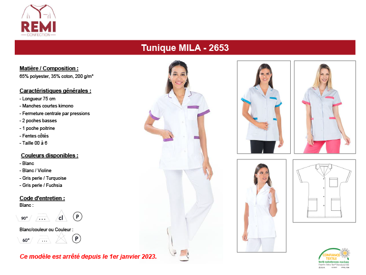 · Couleur : 60° - pas de chlore – 2 points – séchage modéré – Pressing autorisé