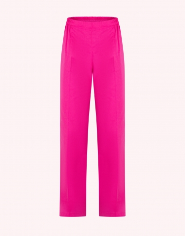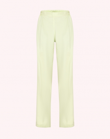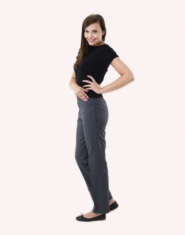 Pantalon femme, ceinture élastique cotés et dos, 2 poches coutures, bas fini, longueur d'entrejambe 82 cm
