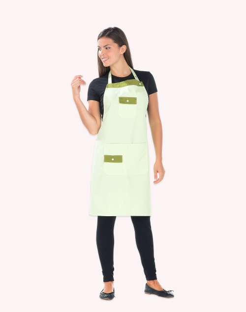 Tablier à bavette, tour de cou réglable par pressions, 3 poches, longueur 69 x 85 cm